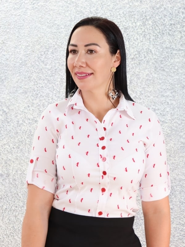Camisera de dama en bengalina y algodón estampado ideal para un look elegante y cómodo. Cuenta con 6 botones frontales para un ajuste perfecto en el busto y mangas 3/4 que aportan estilo y versatilidad. Su tela suave y flexible se adapta a tu cuerpo, brindándote libertad de movimiento sin perder la forma. Perfecta para combinar en outfits casuales o más formales.